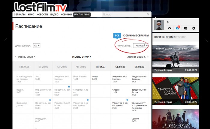 - Списком. Отображает даты выхода следующих серий всех сериалов.