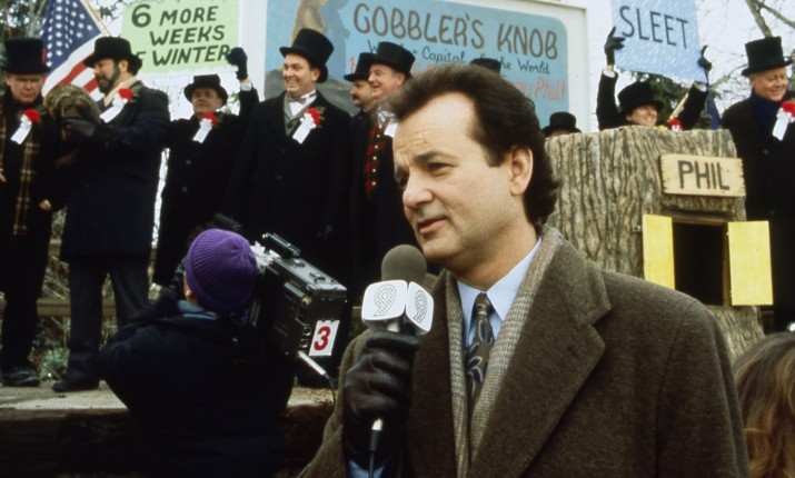 Шедевр Рэмиса работает как метафизическая притча об искуплении отчасти потому, что чудесно проработанный мизантроп Фил начинает свою историю в эмоционально мрачном состоянии. Перед камерой он неубедительно пытается скрыть ненависть к своей работе, коллегам, жизни и самому себе. Тело Фила может быть временно заперто на съемочной площадке в Пенсильвании, но в голове он уже сосредоточен на следующей должности, следующем повышении, следующей станции и городе, которые станут трамплинами для его безграничных амбиций. Как будто насмехаясь над его планами, телеканал отправляет Фила, его помощника-оператора Ларри (Крис Эллиот) и немного сумасбродного нового продюсера Риту (Энди МакДауэлл) в крошечный городок Панксатони, чтобы сделать сюжет о том, как местный сурок-пророк творит свою магию. Согласно традиции, если животное увидит свою тень и вернется в нору, штат обречен еще на шесть недель зимы. Если нет, это должно предвещать раннюю весну.