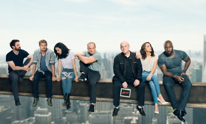 Помимо команды Защитников на снимке можно увидеть Кларка Грегга, Хлою Беннет и, собственно, прораба телевизионной стройки Джефа Лоуба, занимающего пост президента Marvel Television. Кроме того, каждый из участников фотосессии получил по одному, а то и по паре стильных портретов.