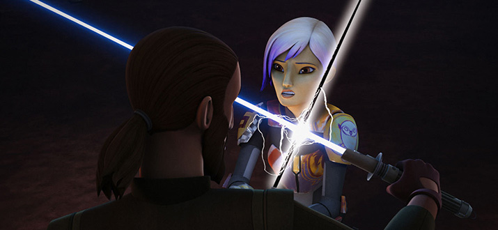 А тут получается очень стандартная вещь; как только есть команда, у каждого или почти каждого из её членов начинает изучаться личная предыстория, где свои тараканы в шкафу, особенно в отношениях с семьями (и особенно родителями). Этот приём использовался и в "Хаусе", и в "Мыслить как преступник", например. И в самих "Повстанцах" мы это уже видели - и с Герой, и отчасти с Эзрой, и отчасти с Зебом. Теперь до Сабины добрались. Шаблонно это.